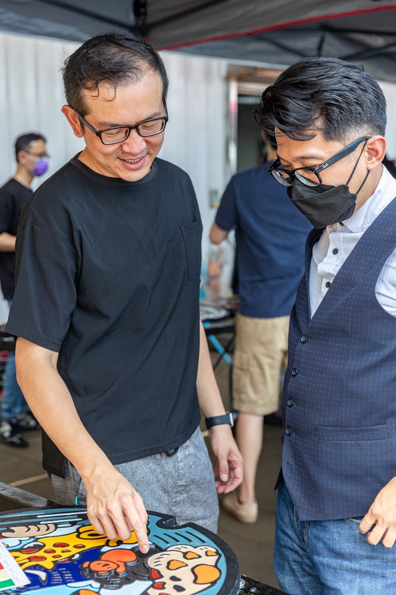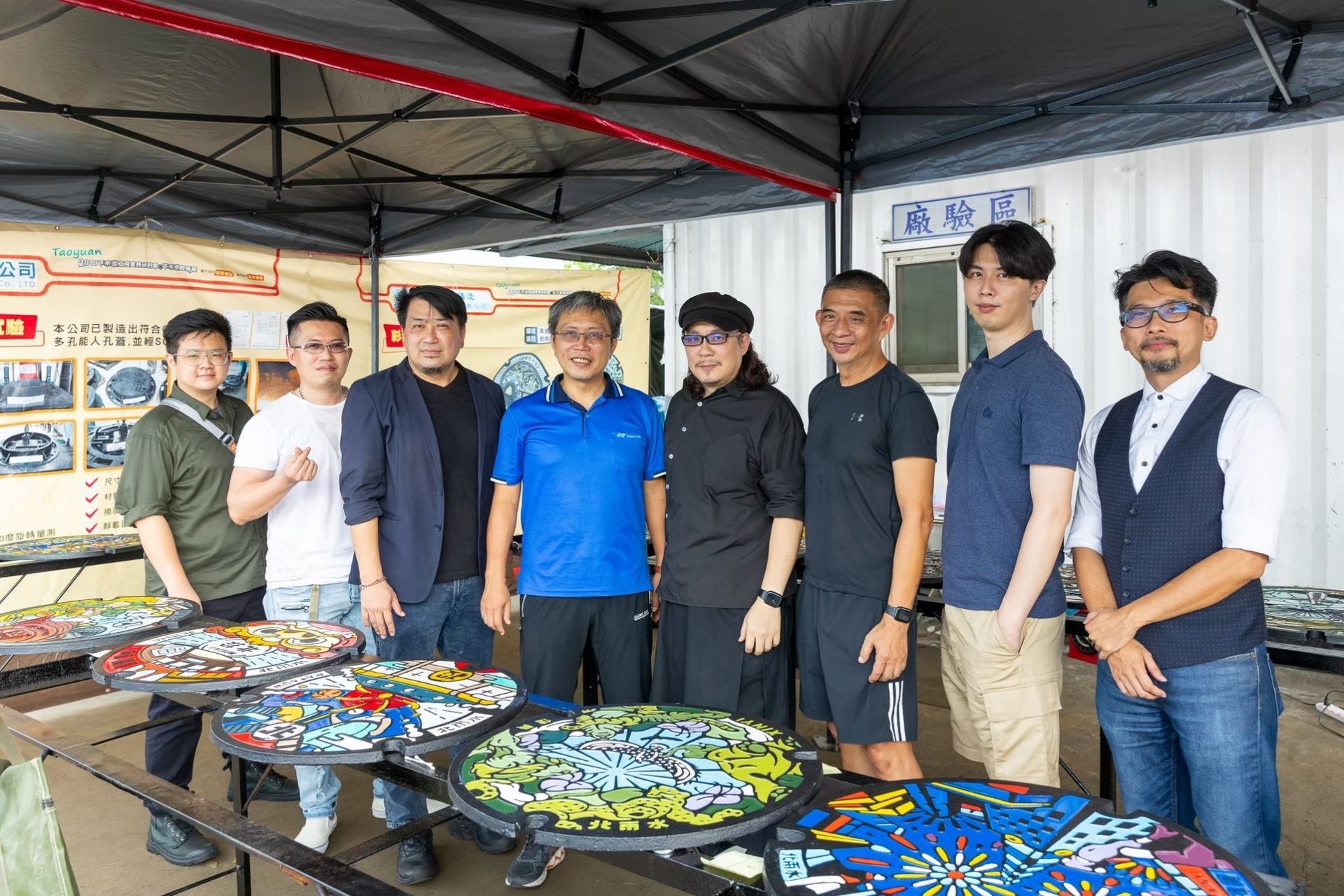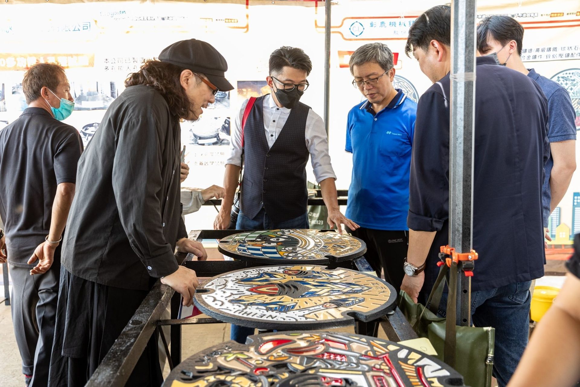 以平面設計來說,PANTONE 色庫總共超過15,000+色,但是在孔蓋製程條件下僅能使用100+色;在配色難度和調色難度都增加許多的狀況下,設計師團隊與工廠多次溝通密切配合,為此本處更派員親自南下至臺中工廠實際體驗了上色的操作,瞭解每座人孔蓋的製作不易。